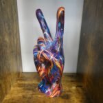 Colourful hand statue featuring a peace symbol, designed to add vibrancy and character to your home.