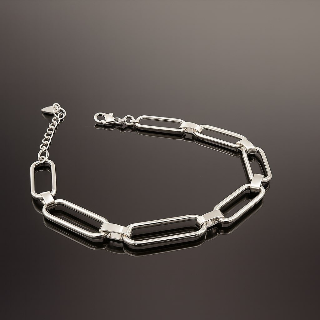 Handmade sterling silver bracelet in a bold paperclip chain design.