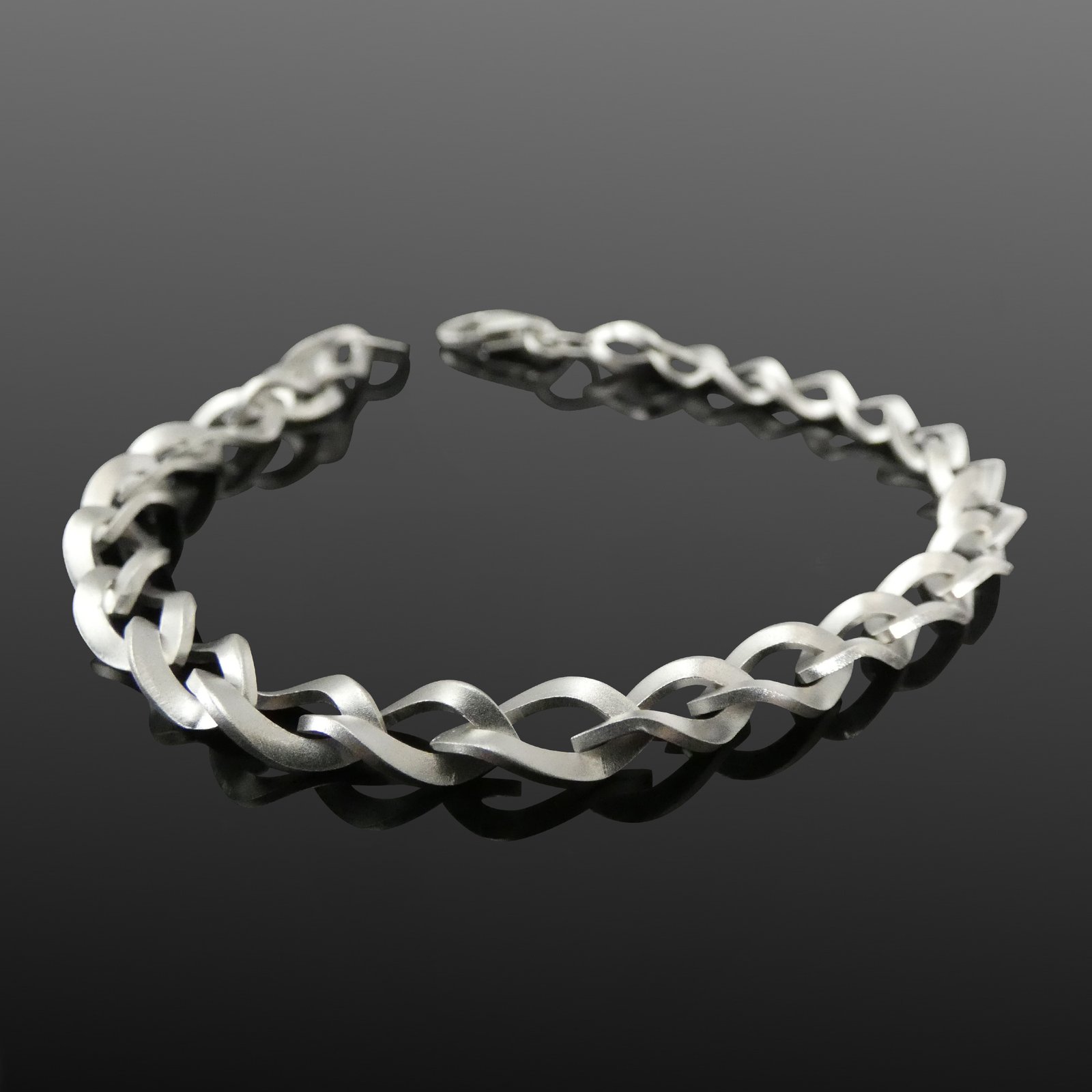 Strong, sculptural, and seriously chic, this bracelet is designed to turn heads. Crafted with bold links and finished in a smooth satin silver, this chunky chain bracelet strikes the perfect balance between edgy and elegant. The soft matte finish gives it a modern, understated feel, while the weighty design adds just the right amount of drama to your wrist. Whether you’re dressing up a simple tee or layering it with other pieces for a night out, the bracelet instantly elevates any look.