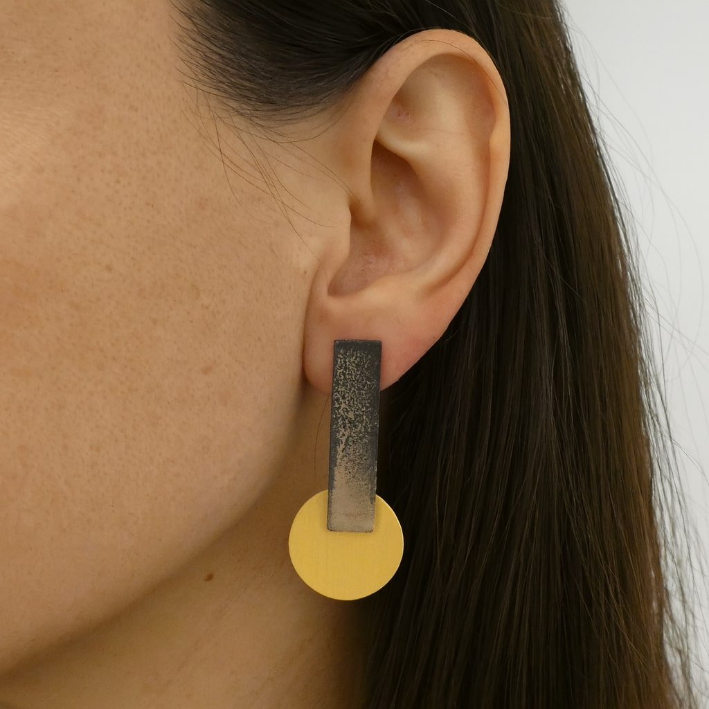 Make a statement with bold contemporary artisan earrings in striking square and circle shapes. Wood-like looks meets modern design for a truly artistic finish.