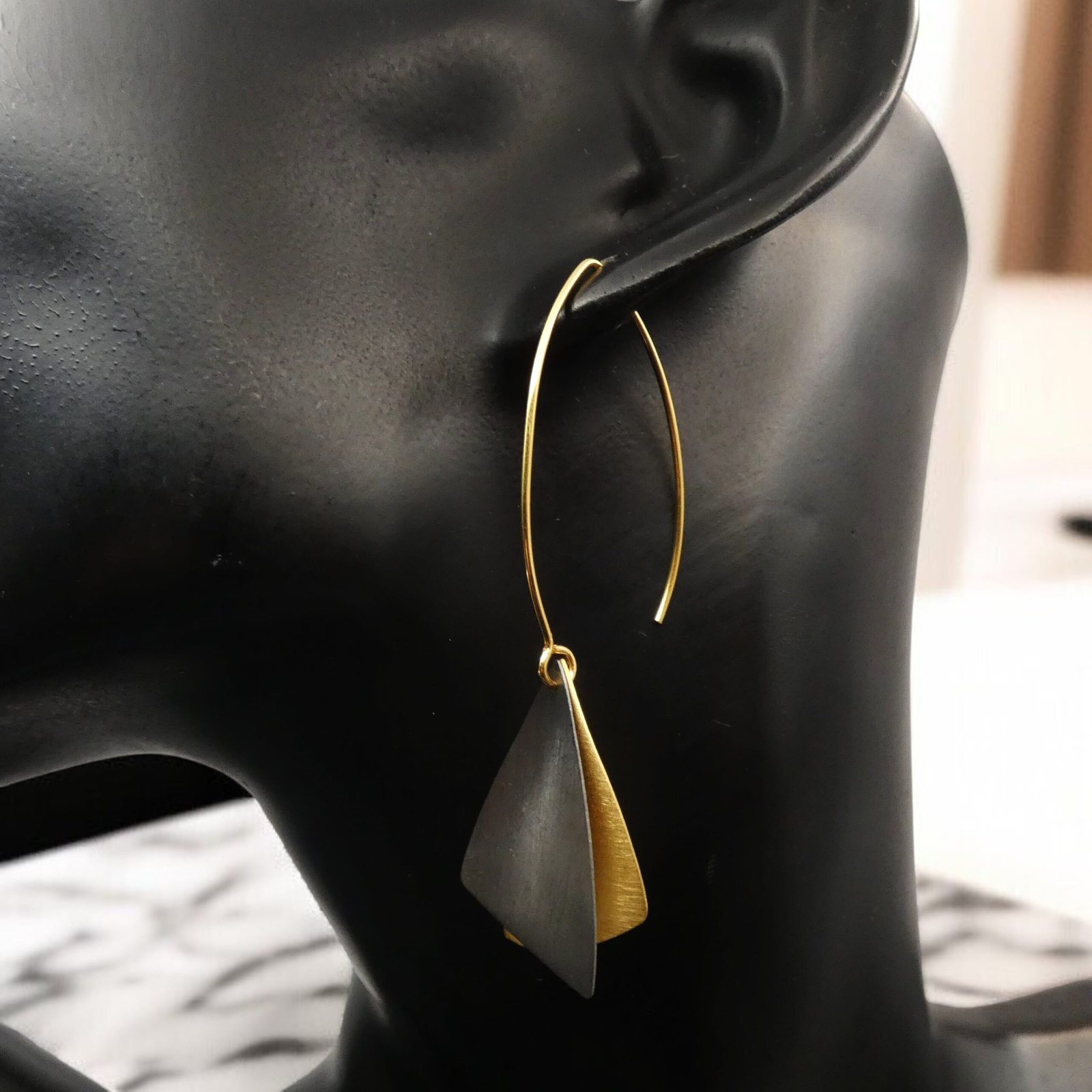 Featuring a striking oxidised black technique paired with contrasting gold plating, these earrings make a true statement.
