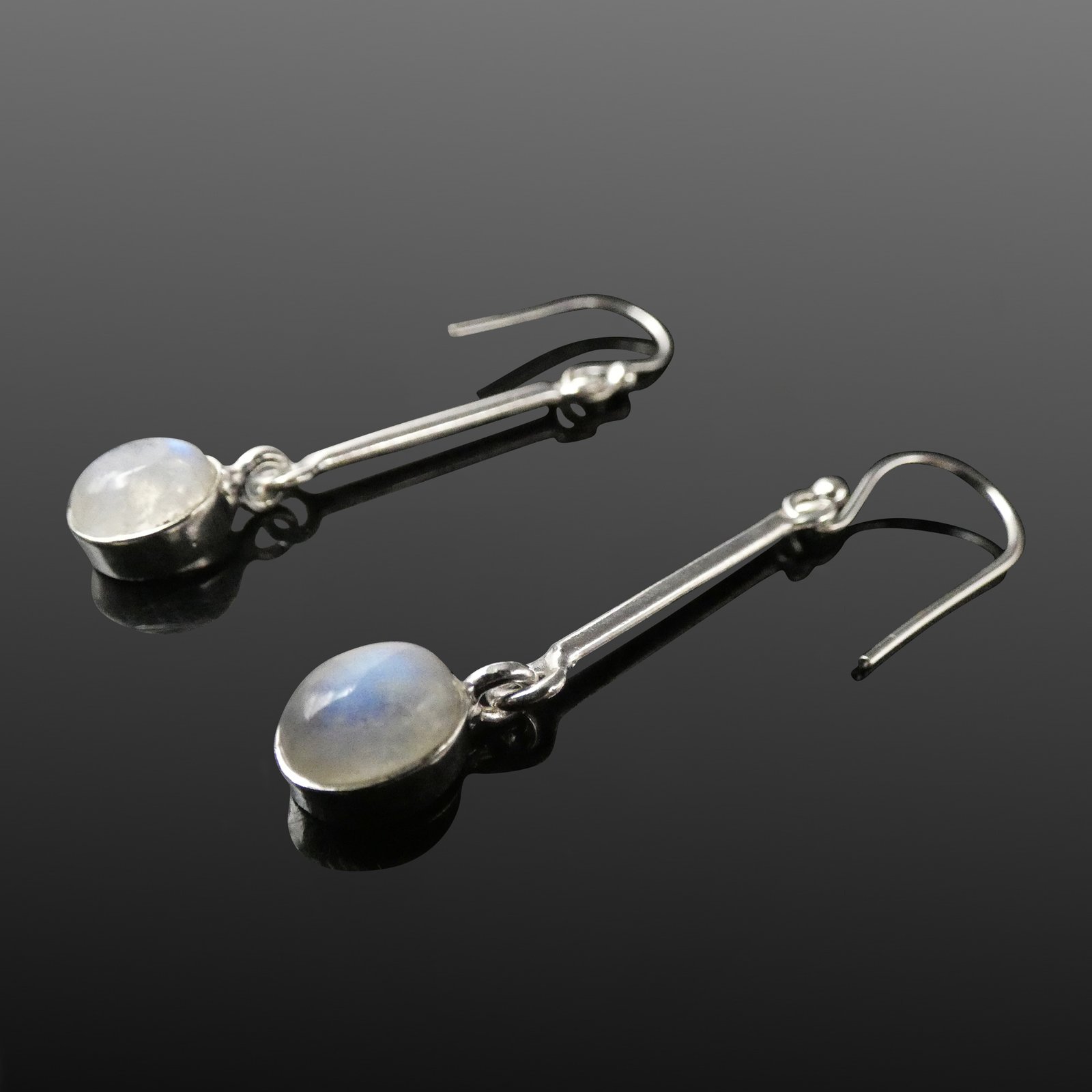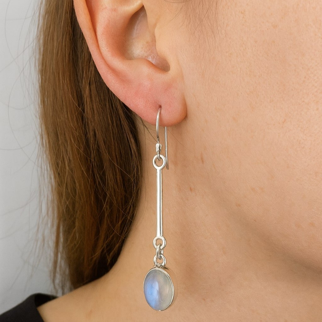 Sterling silver moonstone drop earring – minimalist bar and pendant design.
