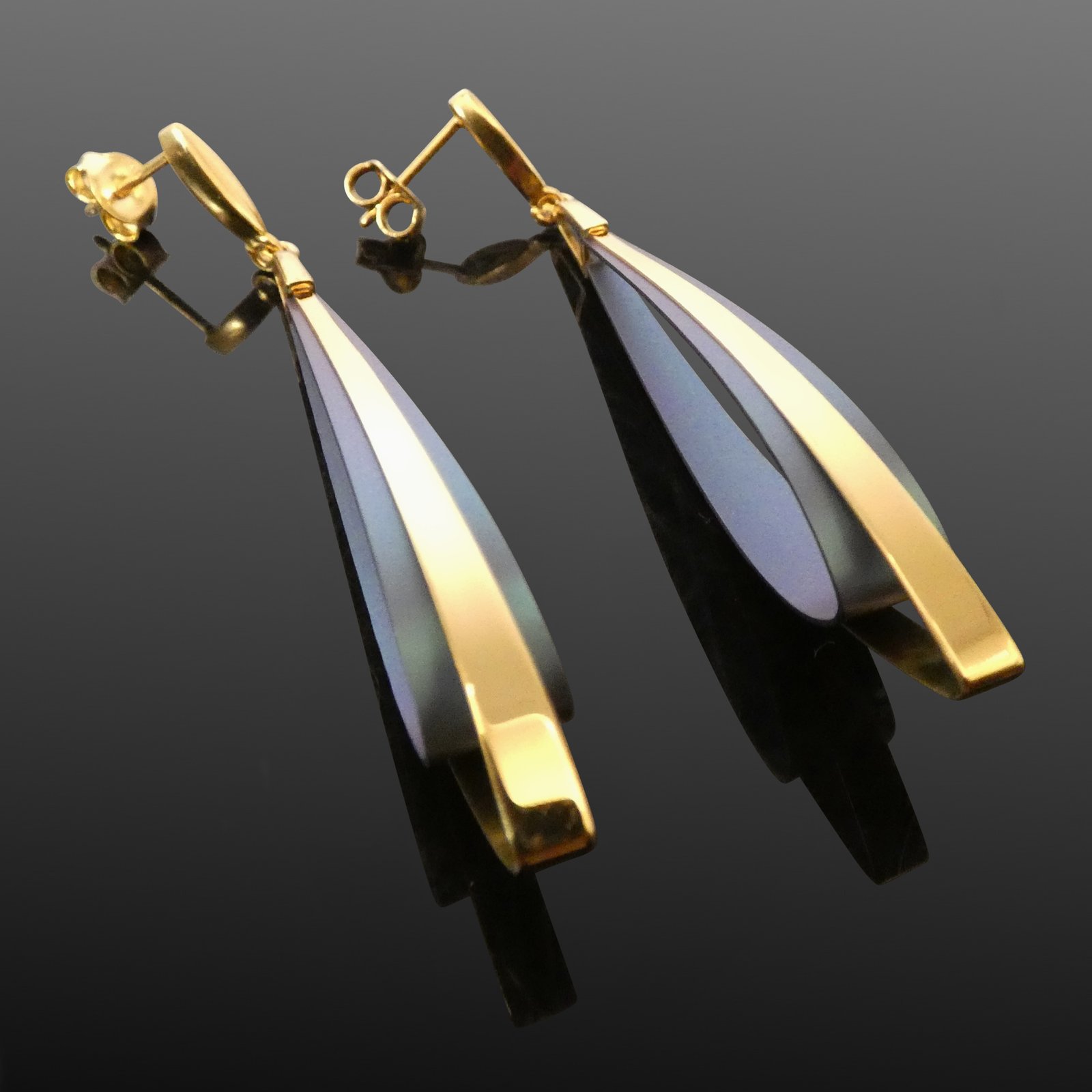 Crafted from hypoallergenic materials, including gold-plated sterling silver 925 and lightweight titanium, these earrings are ideal for sensitive ears. At 60mm in length, they offer a graceful dangle that complements a variety of face shapes and hairstyles.