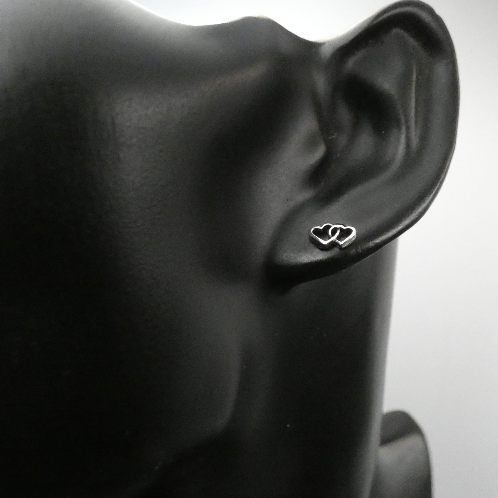 Charming double heart stud earrings crafted from sterling silver 925 with a beautiful mirrored finish. These hypoallergenic silver studs are perfect for everyday wear, symbolising love and connection.