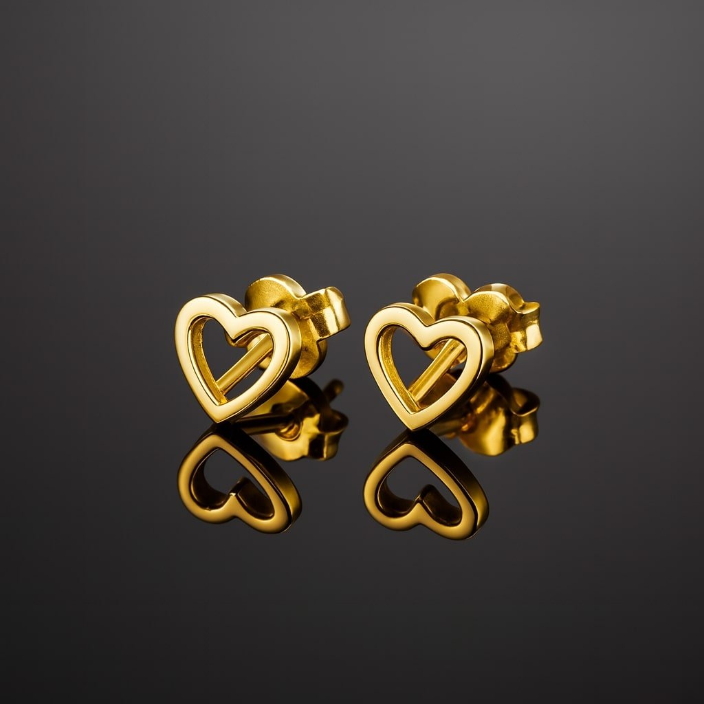 These small heart-shaped stud earrings from our Mojo collection are a timeless addition to any jewellery box. Crafted from sterling silver and finished with a warm gold plating, they offer a classic design with a modern, minimalist feel.