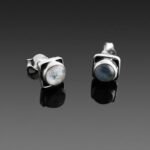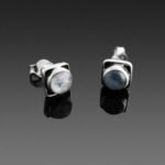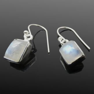 These delicate earrings feature a small square of sterling silver with a round moonstone in the centre.