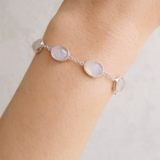 The light reflecting stone captures hues from turquoise through to blue and pink.