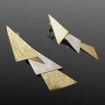 Contemporary handmade sterling silver earrings, beautifully handcrafted in a two-tone gold and silver with a brushed matt finish. Designed with intentional engineering for maximum movement, these bold statement earrings catch the light from every angle, adding a dynamic, eye-catching effect to your look.