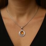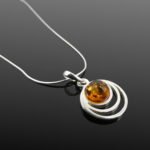 Handmade in sterling silver, this delicate pendant necklace features a beautifully polished cognac Baltic amber gemstone that glows with warm, natural tones.