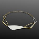 The sleek, sculptural design sits gracefully at the collarbone, making it a standout accessory for both daywear and evening occasions. Whether you’re dressing up a minimalist ensemble or adding contrast to a softer look, this necklace brings a sense of effortless luxury to every outfit.