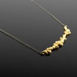 A stunning organic style necklace with a collection of small bubbles in matte gold and a black delicate chain.