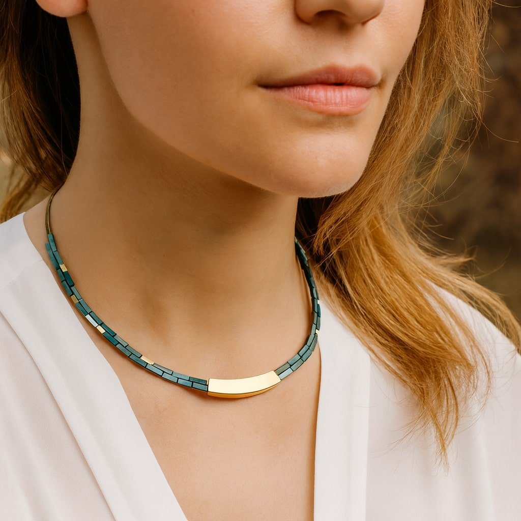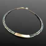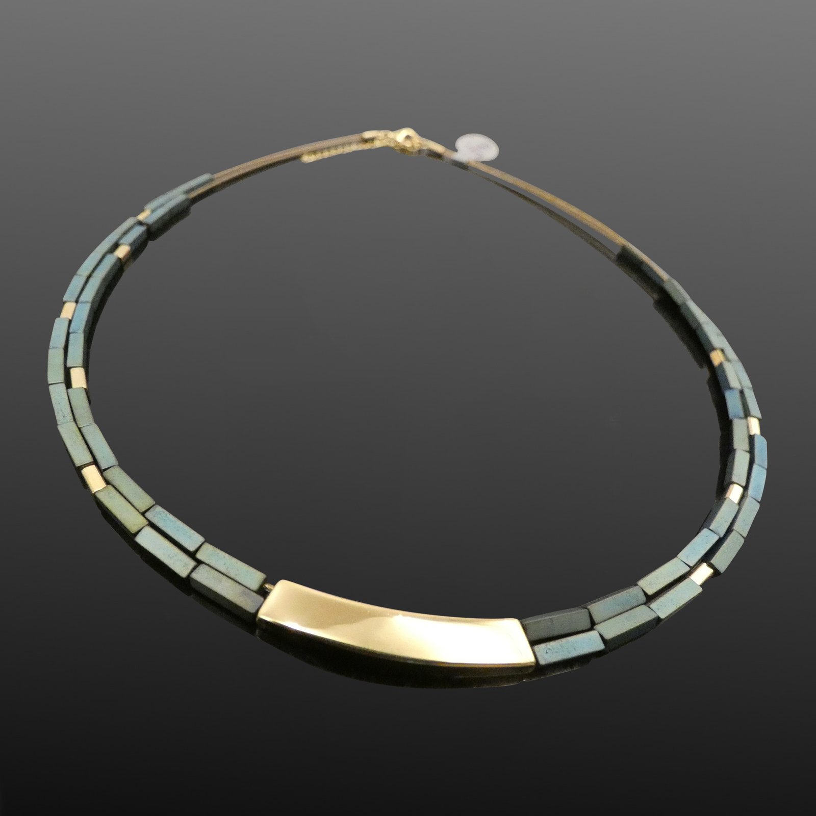 Handmade necklace featuring vibrant green hematite beads paired with gold-plated sterling silver.