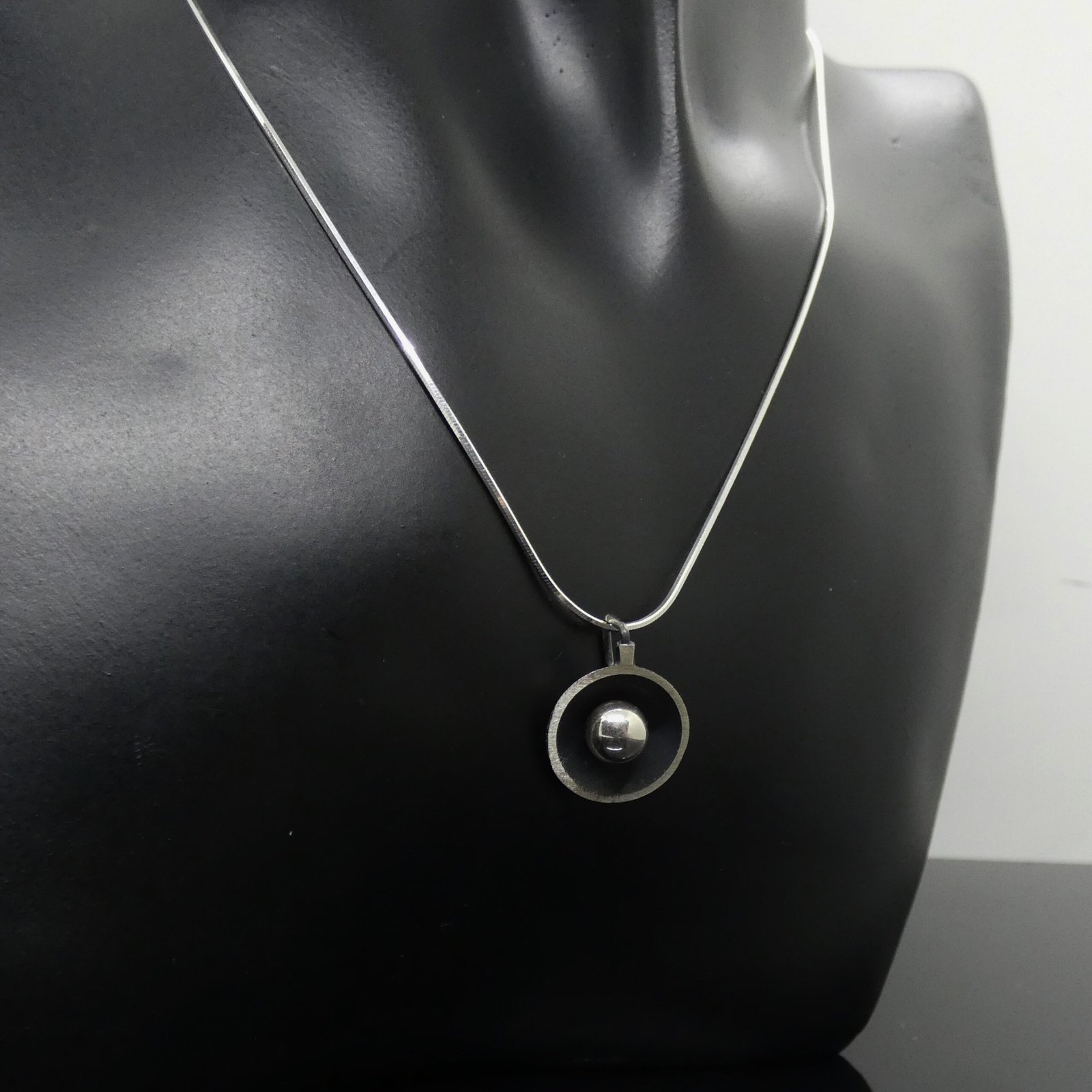 This contemporary oxidised pendant will be perfect for every day wear.