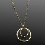 Elegant with a modern edge, this gold-plated sterling silver necklace from our Mojo collection features two textured circle charms – a smaller one gently suspended within a larger, open circle. The subtle hammered finish adds depth and shimmer, catching the light beautifully with every movement.