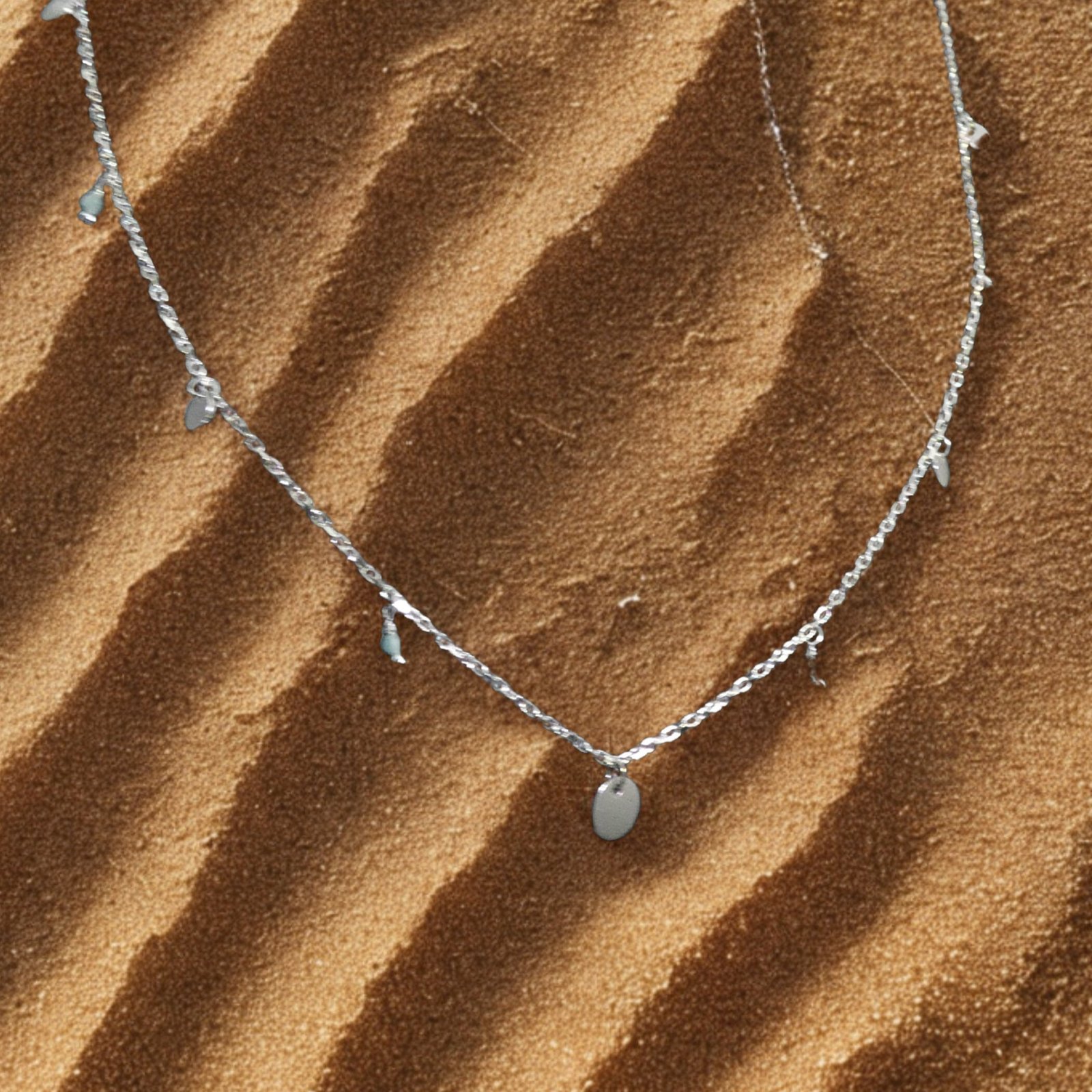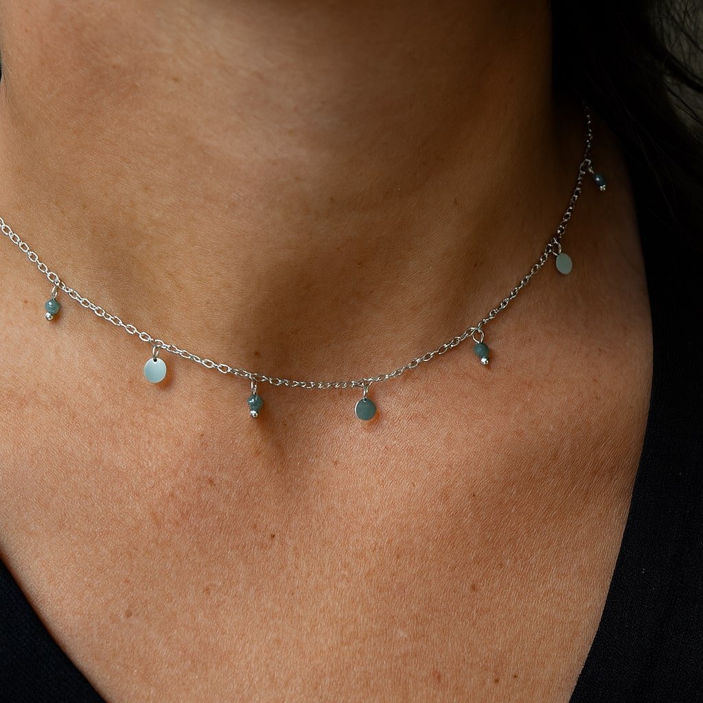 Crafted from high-quality 925 sterling silver, this necklace is lightweight and versatile making it perfect for layering or wearing as a standalone piece. The combination of smooth silver discs and small amazonite charms creates soft movement and shimmer with every step.