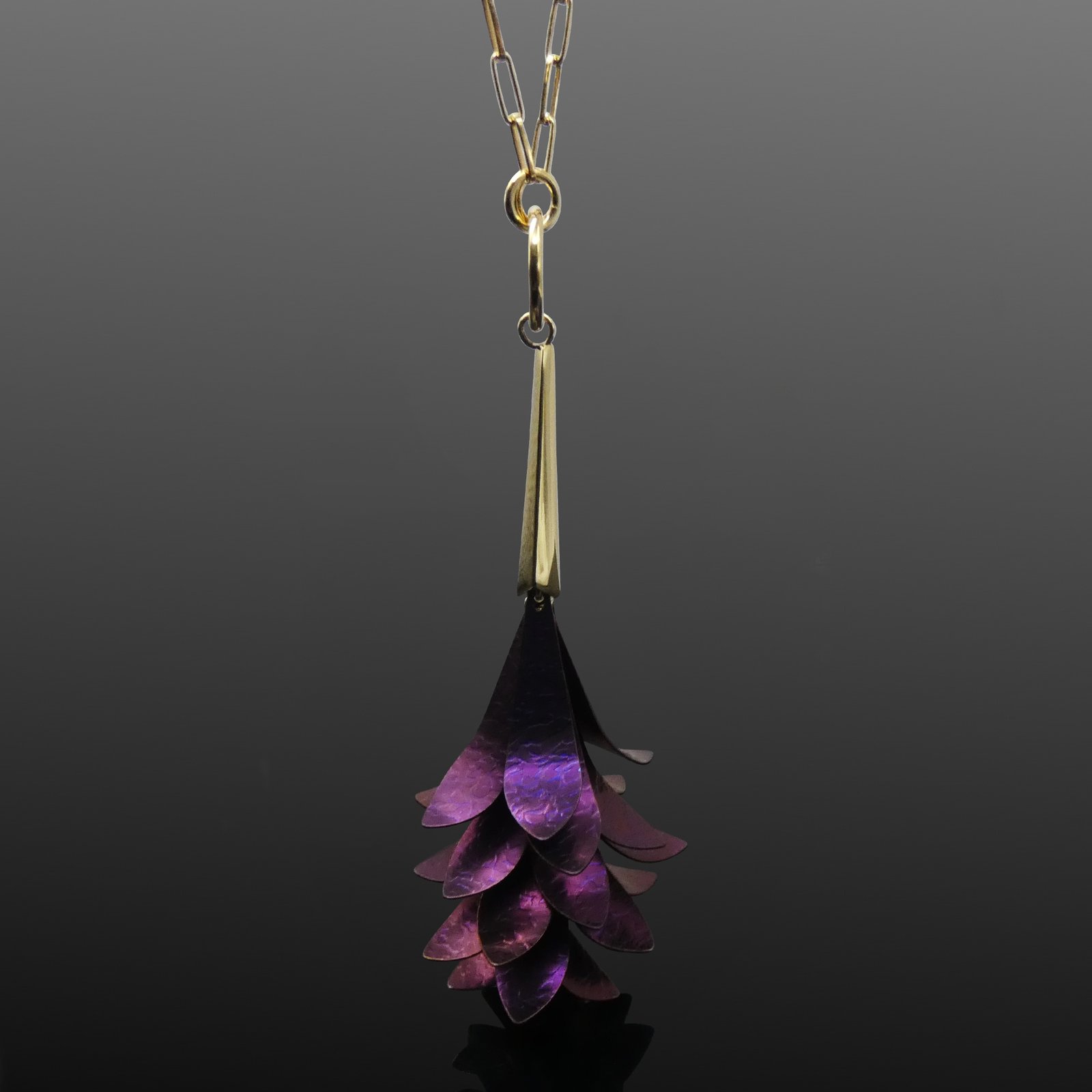 This purple gold-plated necklace features delicate titanium petals that move gracefully with you. It brings a touch of natural elegance to any look.