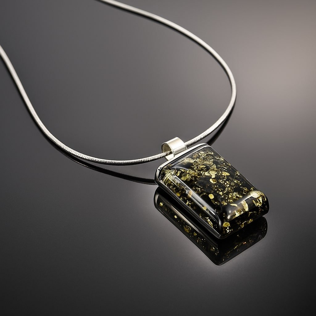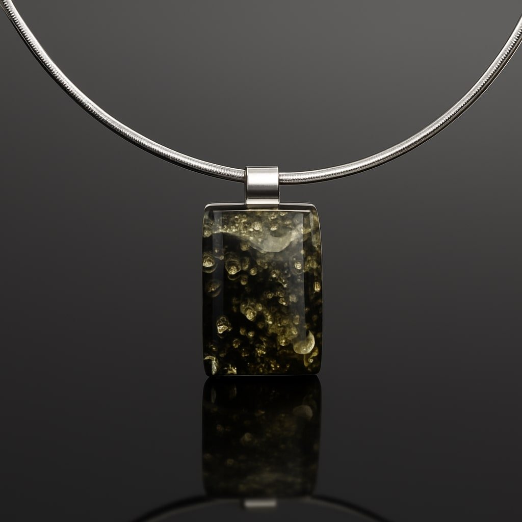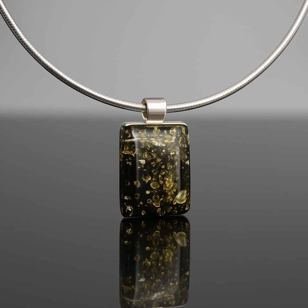 One-of-a-kind solid silver necklace featuring a minimalist green Baltic amber gemstone in a simple and timeless design with a high-shine mirrored finish.