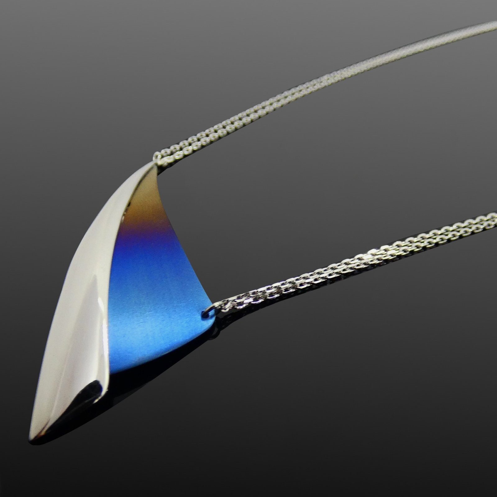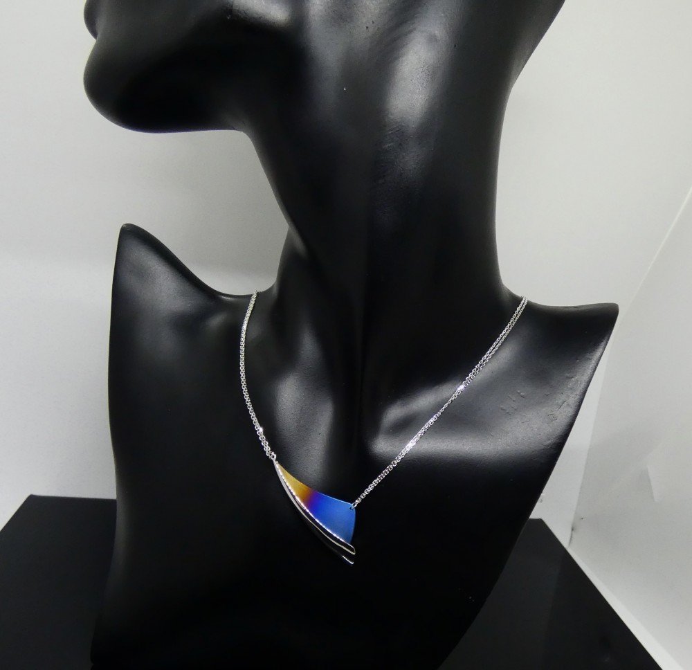 Contemporary multicoloured titanium and silver necklace.