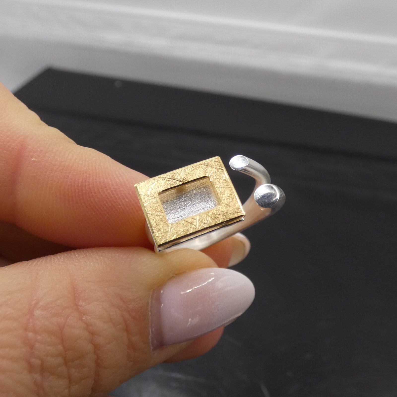 A reflection of modern architecture and slow craftsmanship, this 925 sterling silver ring balances bold form with subtle texture. Adjustable, hypoallergenic, and made to be worn effortlessly every day.