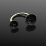 This unusual modern ring with an open design floats on your hand. The subtle sparkle of green, blue and purple hues catch the light with each movement.