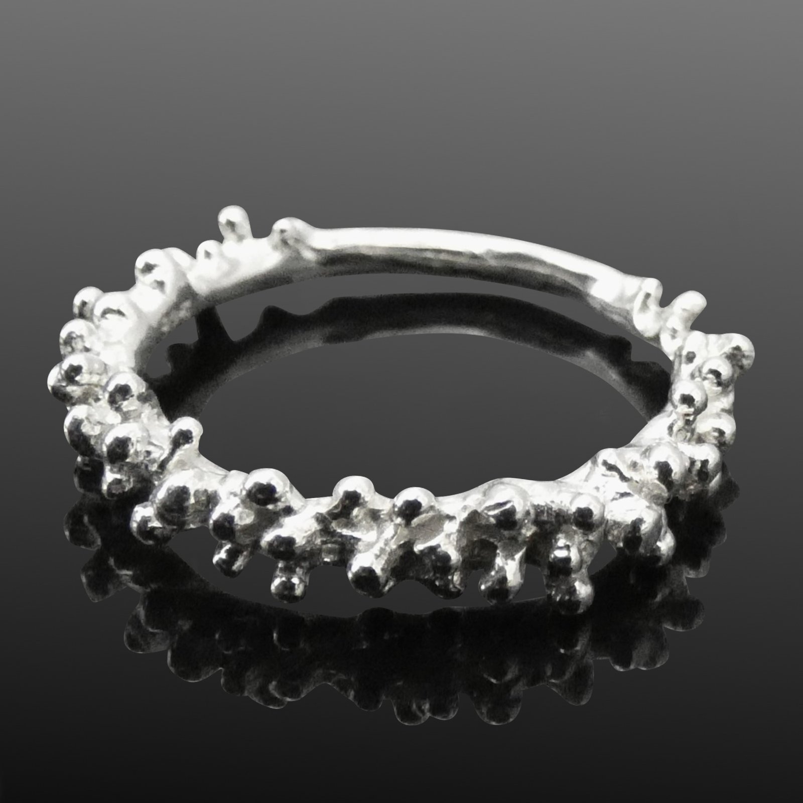 Made from silver, this ring has a rustic, earthy feel while still being sleek and easy to wear. It’s the perfect balance of bold and subtle, great for everyday wear or as a standout piece in your stack.